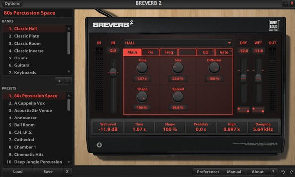 过大声 – Breverb 2 是一款高质量的软件混响,模仿知名硬件乐器。它包含七种不同的混响算法——Hall、Room、Plate、Inverse、Spaces small、Spaces large 和 Sources,所有这些算法都经过精确建模和设计,丝毫不妥协于音质。完整的均衡器部分。超过270个出厂预设。CPU使用率极低。“只需一个插件,2万美元就能获得声音,价格不到200美元:Breverb 2 将让你的混音听起来像格莱美获奖歌曲。”